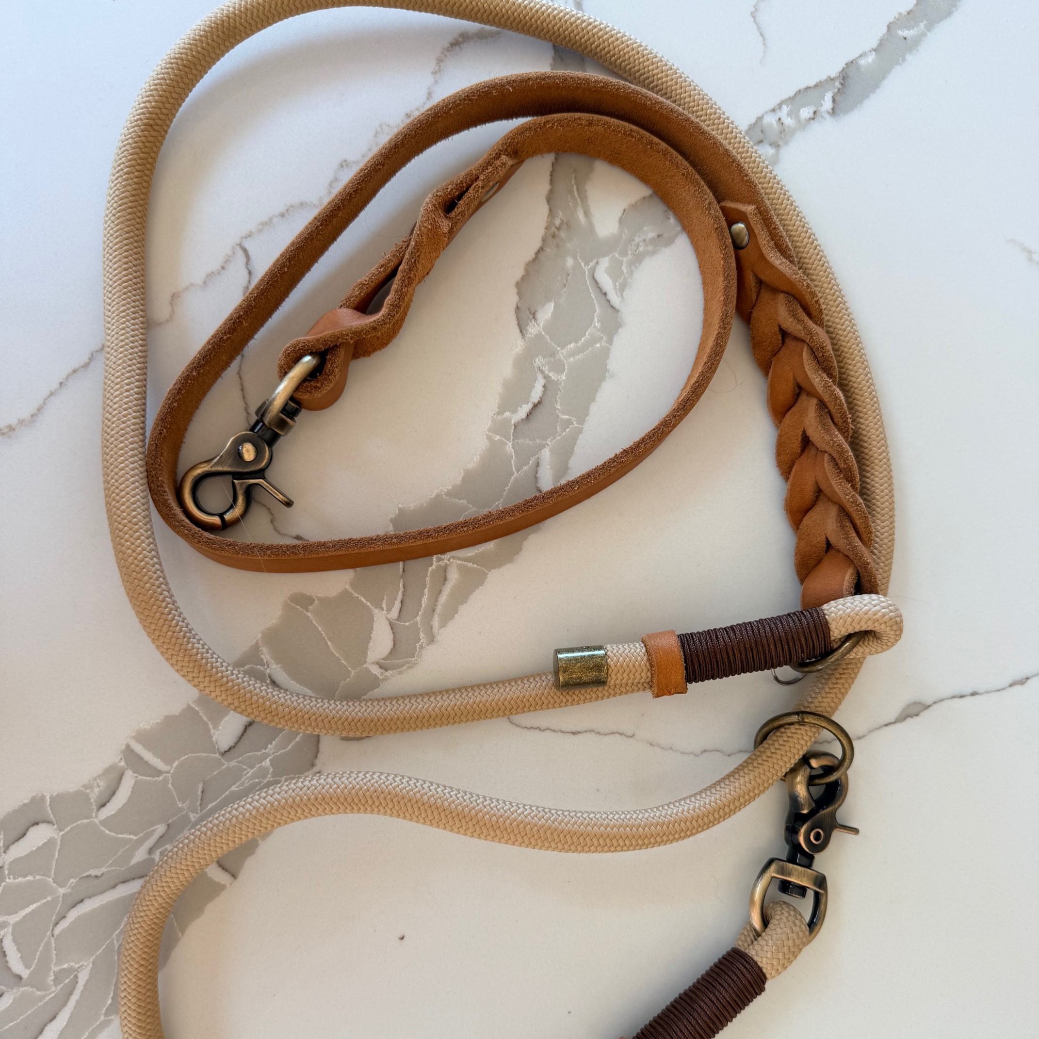 Featuring a half leather, half rope construction, this lead delivers the durability of braided rope with the comfort and control of a leather grip — making it ideal for everything from daily walks to working dogs.