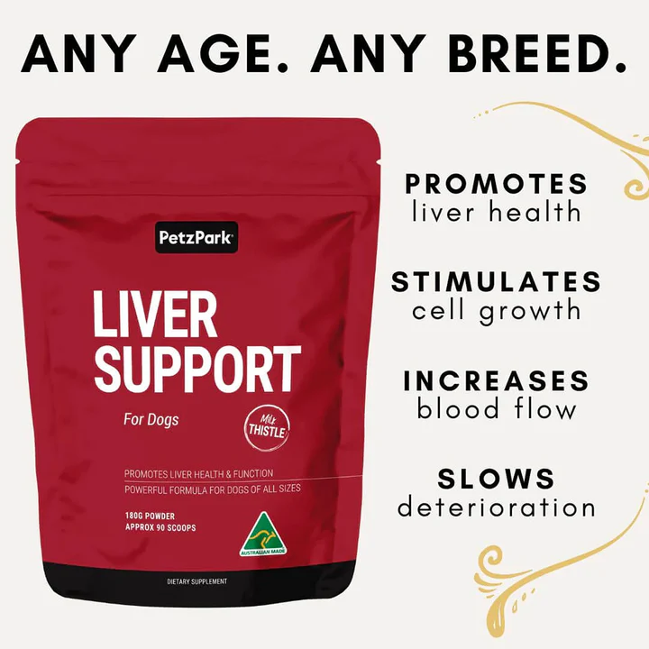 Support your dog’s liver health naturally with Petz Park Liver Support, a powdered supplement designed to help protect liver function and slow liver deterioration caused by ageing, environmental toxins, infection and stress.