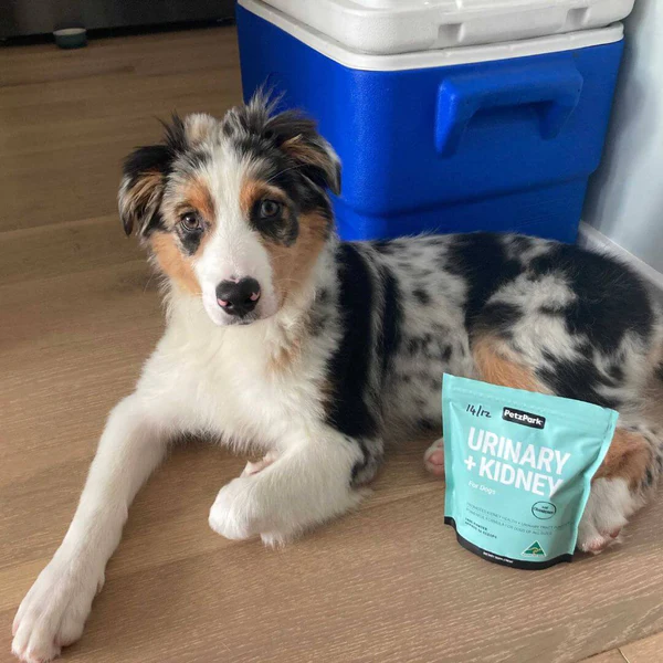Support healthy kidney function and urinary tract health with Petz Park Urinary + Kidney for Dogs — an Australian-made powdered supplement designed to help maintain normal urine flow, support kidney health and promote urinary comfort, particularly as dogs age.